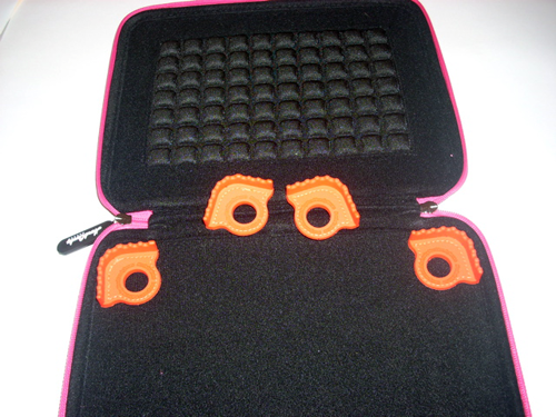 Inside the Bubble Sleeve there are positionable rubber bumpers. The manufacturer calls these shock absorbers. I wondered why they were removable until I got the Squish Skin, then realized that the case is roomy enough to have the skin protection on the iPad and still fit into the Bubble Sleeve.