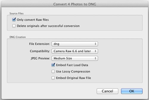 Lightroom 4.0 also brings with it a new DNG format specification. The new specification adds a way to Embed Fast Load Data into the DNG. This option adds some information into the DNG file that will make it faster when going to the Develop module. It will probably be used in other Adobe applications in the future as well.