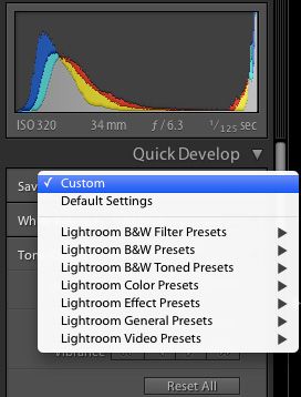 Quick Develop Presets are now grouped into folders. In the past they were shown on a long list of available presets. With this new classification, it is easier to get to what you want and choose one preset on the list. If you create your own presets or download some from other photographers’ web sites or friends, you will appreciate the folder hierarchy.
