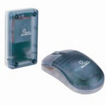AeroMouse gets its instructions from a cradle-mounted iPod-sized receiver that is bus-powered from a computer’s USB port, either built in or hub connected. The 900 MHz receiver has an impressive range, and can handle up to eight AeroMice at once.