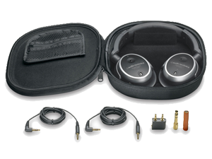 The QuietPoints also come with a hard case for storing both the headphones and included accoutrements. (Adapters include 1/4-inch, airplane jack adapter, and the cable itself.)