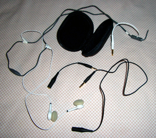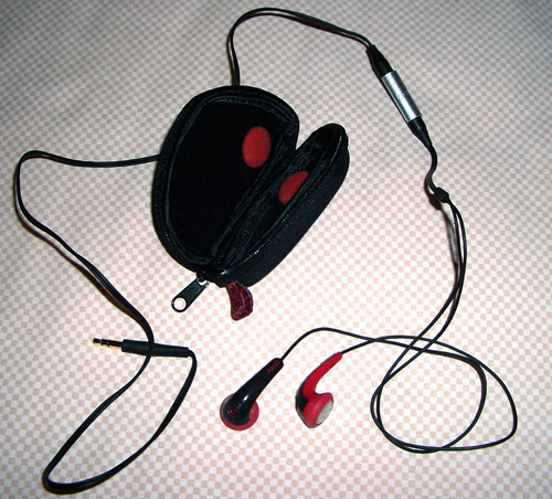 K317 has an unusual and quirky behind-neck lanyard cable, with bonus cable extender adapters for iPhone and cell phone jacks, but no volume control; the case is zippered vinyl.