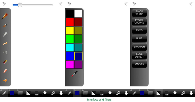 You can also zoom in to your painting and move around the screen as you work so you have a bigger canvas. There are many multitouch commands that are easily viewable through one of the menus.