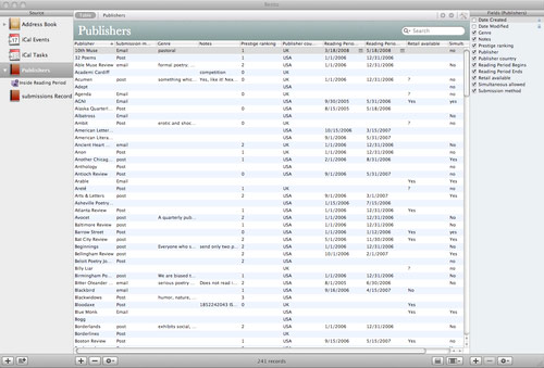A balance has been struck: users with complex, evolving and intricately relational databases may still be best with FileMaker Pro. Those for whom the lure of an elegant user interface is important and/or who want a direct equivalent of Numbers, Pages and iPhoto/iTunes and/or seamless integration with iCal and Address Book should look seriously at Bento. Download the trial, use it carefully and draw on the many sources of online help, remember its very reasonable price, decide whether you’ll be able to make Bento do a variety of things for you larger than the dedicated software mentioned at the beginning of this review can do – and see!