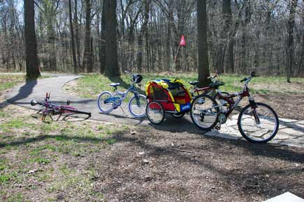 Here in Battle Creek, Michigan, there are a lot of bike trails to explore. The trouble is, we have to stick to the paved bike trails, even though we all have bikes which we could explore the wooded variety. You simply cannot go trailing with a baby bike carriage.