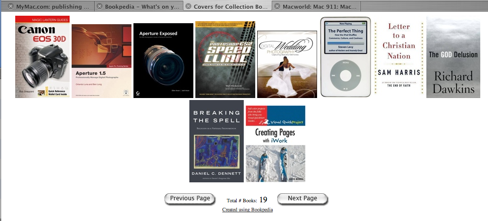If you have a .mac account, Bookpedia will create a template-based webpage(s) of books based on your collection or a folder in your collection. You can also export your collection to your iPod, as well as get statistical information about your collection.