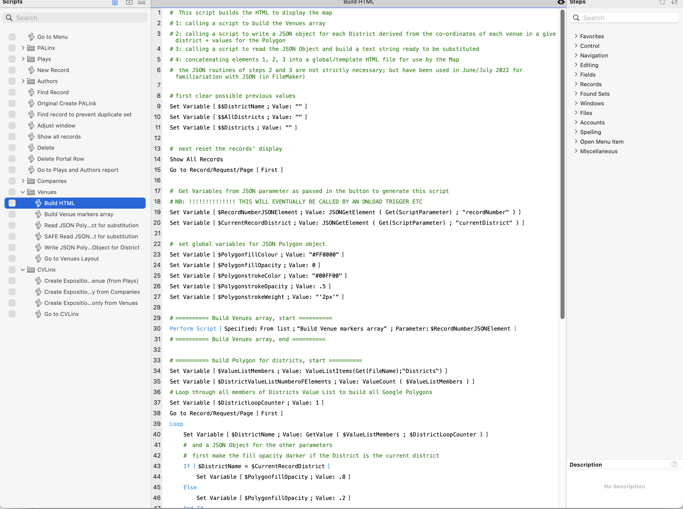 There is a significant new Script Trigger (a way of running a script when (‘external’ conditions are met): OnWindowTransaction creates a JSON object whenever a window’s transaction completes successfully. This includes five values or parameters: file name, base table name, record ID, operation, and contents of that base table’s field named onWindowTransaction (or a specified field).