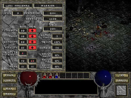 Distributing skill points sensibly is essential if your character is going is going to have any chance of doing well in the later stages of the game, be it the original Diablo as here or the sequel.