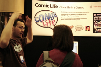 Walking the Expo floor door today, it was great to stumble upon the Plasq developers booth, staffed with a group of young, energetic developers who were very excited to announce the update at Macworld of their award winning program, Comic Life 1.3.