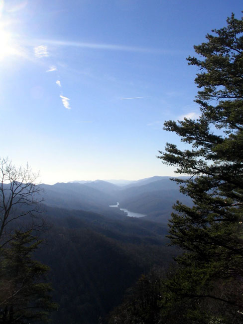 There are many more trails though, the Park lists around seventy or so miles of hiking to horse multi-use trails extending, I’m guessing to the northeast and southwest along the Cumberland Mountains. The road from the lowland trailheads twists severely up the Gap’s northeastern mountainside revealing a view from the Pinnacle, a touristy park and walk-yer-lazed-arse convenience pull-in that leads hungry observers to a panoramic overlook of a mostly southern expanse of distant, wavering terrain; a place of serenity belying its prominence as a military observation stronghold during the Civil War. To the northwest Fern Lake reflects lazy sunlight amidst the sagging peaks of the Cumberlands, slowly dripping the water bounty to the city of Middlesboro.