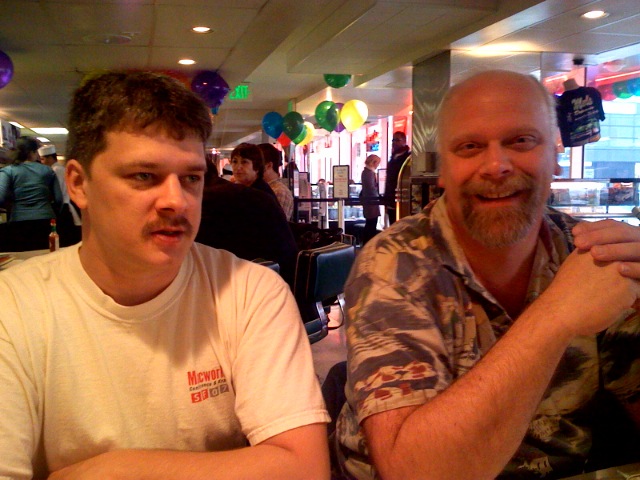 Here’s Tim with Guy Serle. You know what this means, don’t you? Tim let someone else use his iPhone. (Don’t forget to wipe the butter and bacon grease off the touch screen.)