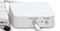 On three of the four Macs I tested the DRK on, the microphone (using the iBooster) was not “seen” by the Mac at all. There is no software with this bundle, thus no drivers for the iBooster. (Again, it plugs into your audio jack, not USB, so no drivers are needed) After hours of trying to get the setup working on Chad Perry’s G5, as well as my own G5 and PowerBook, the only system that it actually worked with was an older G4 of mine. I don’t know if there is a software problem of some sort or what, but nothing I tried worked and no application could “see” the audio input. In an effort to get it working with these machines, I tried plugging the iBooster into a Griffin Technology iMic (which accepts an audio mini-plug and converts it to USB) and it worked perfectly on all four machines.