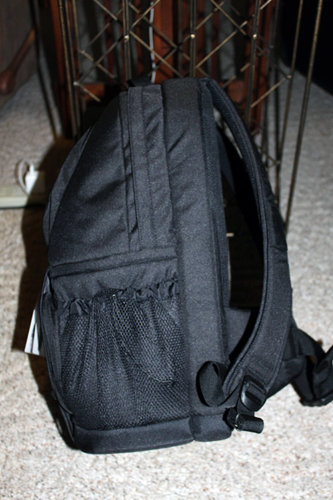 The right side of the backpack provides a mesh pocket with a drawstring. This is handy for a water bottle or something that requires immediate access. The drawstring is a nice addition to provide the greatest flexibly possible.