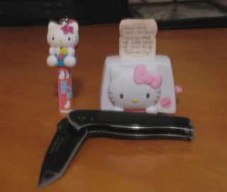 HELLO KITTY SAY SEIBOLD GIGGLES MAKE ME WRAP SELF IN NEON PINK CLINGFILM