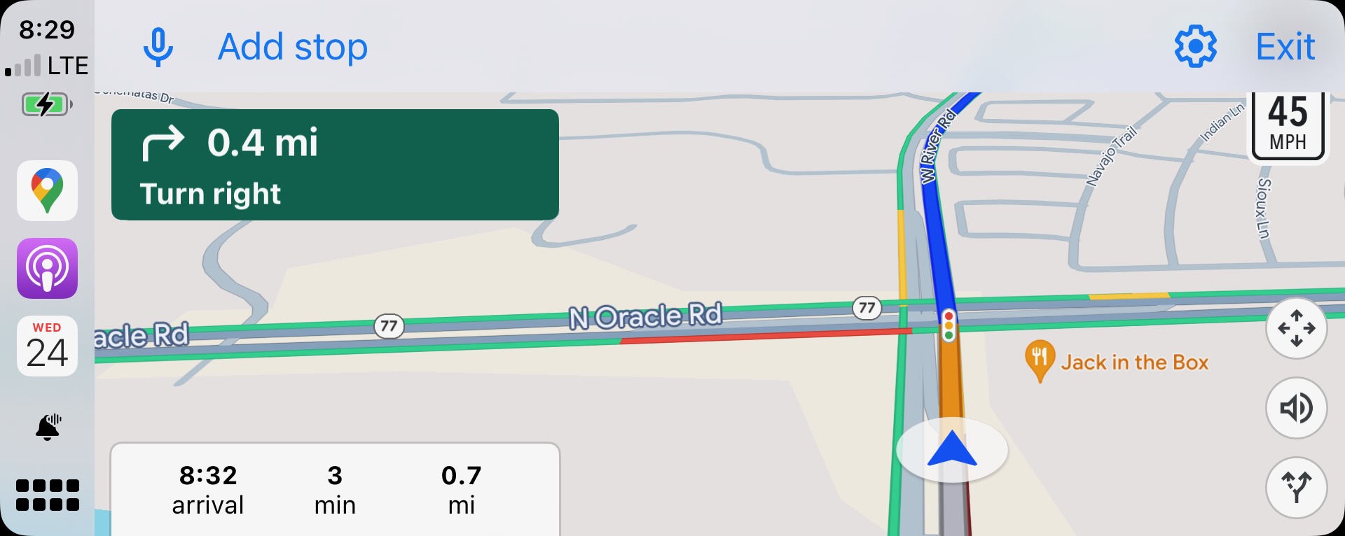 Apple Maps in CarPlay showing which highway lane to be inApple Watch displaying upcoming turn for Apple MapsApple Maps in CarPlay – compare to Google MapsGoogle Maps in CarPlay – compare to Apple MapsApple Maps allows you to report incidents similarly as Google Maps and Waze. There are not quite as many selections compared to the other two.This is how incident reporting looks in Waze.This is a cool feature unique to Waze where it will show you when you’re speeding.ScreenshotCalendars5 by Readdle lets you choose which default map app you want to use for driving directions.When you ask Siri to take a screenshot, you’ll get two – one from CarPlay and the other from your locked iPhone. This results in a black image. When viewing in your Photos app, be sure to delete all the black images.