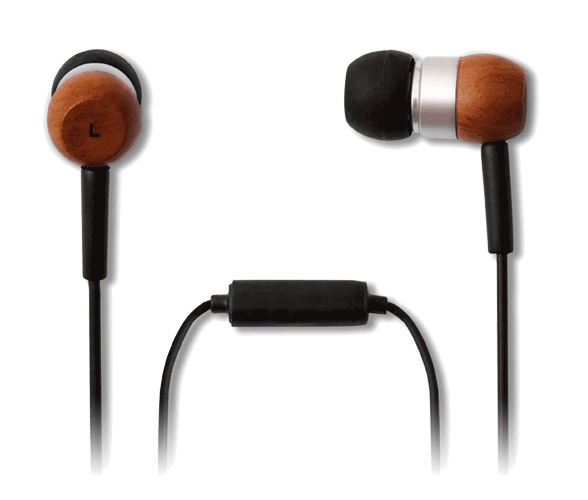 The Timbre, with its unique wood speaker chamber, has a much richer sound without being as bass heavy as the in-ear earbuds I am accustomed to. The wood and the larger opening into the ear I think are what accounts for the better sound since statistically (as listed on the boxes, only the sensitivity rating is different) the two sets of earbuds are identical. The only negative thing I have to say about the Timbre is that I’m a bit nervous about how durable it may be. When removing them from my ears, the small tube that the wire passes through tends to pull out of the wood speaker chamber on the right side. It doesn’t happen on the left side, so I’m guessing that trait is peculiar to the particular pair I have. The Timbre passed the lawn mower test with the smallest ear-fit pieces, but not the medium & large ones. A version of the Timbre without the mic is available for $39.99.