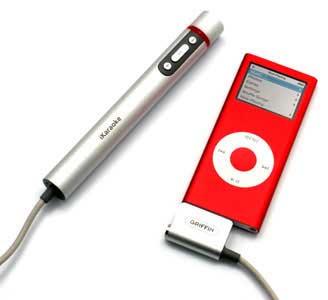 It’s iKaraoke from Griffin Technology. Apple Store staff tell MyMac.com it’s flying off the shelves, week after week. (Editors note: this was one of the most wanted giveaway items during our AppleQuiz at the Apple Store in Grand Rapids. Everyone wanted this!) You use it to sing or speak via iPod through your stereo system. Fifty dollars? Ha! Once you try it you’ll be hooked, and go out of your way to find opportunities to use iKaraoke as often as possible. You’ll start telling friends and strangers about it, and drive them nuts until they obtain one and do the same ad infinitum.