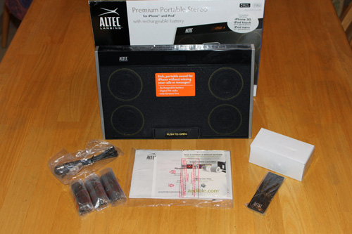 The dimensions of the inMotion MAX are 12.2″(W)x2″(D)x7.6″(H). It is a very portable size, easy to pickup and take along on a weekend to the coast, to a different room of the house, and anywhere in between. In particular, the design feels very thin and sexy. Altec Lansing, as always, has spent a great deal of time designing a beautiful enclosure for their state of the art audio system.