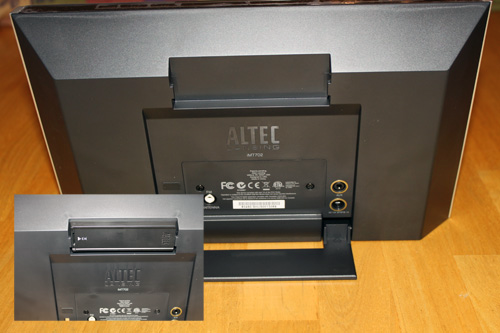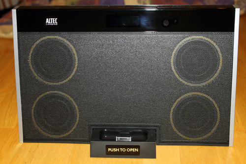Of course, what would an audio system be with out a docking station. Altec Lansing has come up with a nice design for the inMotion MAX. At the base of the front, there is a retractable docking station that allows you to retract the dock when it is not needed. Having the ability to retract the dock helps to maintain the thin profile of the inMotion MAX. All in all, a very nice design that does not sacrifice beauty for practicality.