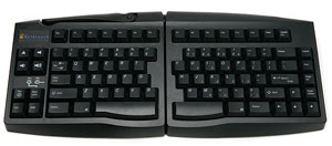 KEYOVATION: We felt it was necessary to stay close to the standard QWERTY layout to minimize the learning curve. For individuals who would already be adjusting to a split design keyboard, we felt it would be a shorter adoption cycle if the layout were familiar and keys were laid out in locations where people would expect them. Also the Apple Control key, right and left Apple & option keys, the CD eject, and the mute/volume control keys common to Apple users are included.