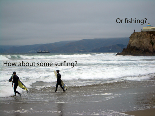 July 4th Postcard from San Francisco’s Beach November 30, 2009February 28, 2025 John Nemerovski Review Leave a comment A beautiful day for a picnic? Hey, bird — get away from my brother’s lunch! How about some surfing, or fishing?