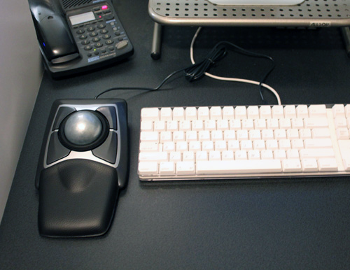 If you have never used one of Kensington’s large ball trackballs, the first thing you notice is how effortless it is to move the cursor. With this type of tracking device, one moves the cursor by using the finger tips instead of grasping the device with the hand. For me, there was no learning curve, only an immediate relief of the stress and pain I had felt when using a standard pointing devices.