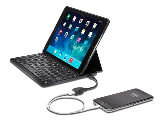 The KTX comes with an adapter that plugs into the charging port that features a USB connector on one end. Kensington calls this feature PowerLift. Using the Powerlift technology allows one to connect their Smart phone to the USB connector and use the internal 1650 mAh battery to grab a quick charge in a pinch. That is the only thing you can do with this connection.