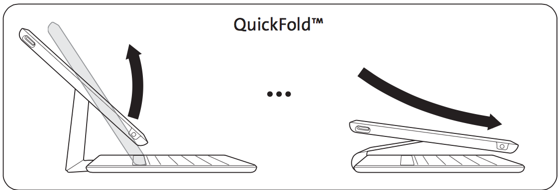 Conversely, using the Quickfold option disconnects power from the keyboard and folds your iPad over the keyboard for regular iPad use.