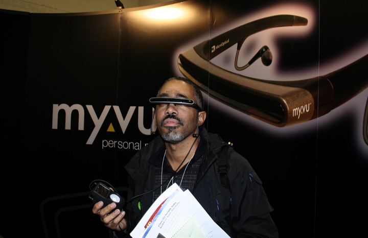 The future of the 5th generation iPod Video has now arrived–MyVU Personal Media Viewer.Â