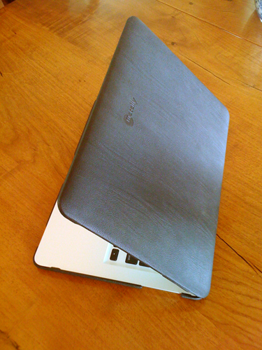 MacAlly says the exterior of the AirShell is covered in “Executive Black Leather.” Not being an executive myself, I found the material leather-like, and pleasantly grippy. Users of the AirShell will find it far less likely to have the MacBook Air slip or slide out of their grip.