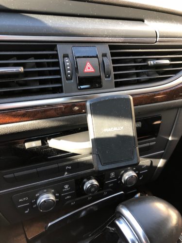 MCDHOLDER is almost exactly the same setup except instead of the phone attaching with magnet, it is held with an adjustable grip. It comes with the same size adapters but does not come with the magnets. All tests were done with an iPhone X and an 2015 Audi A6.