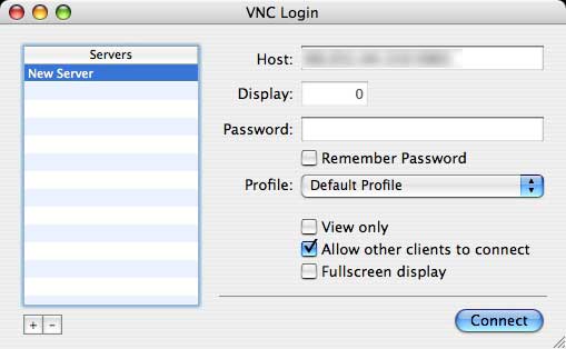 In “Host,†you need the person at SickMac to read you the IP address showing in Share My Desktop. You also want to add “:5901†after the IP address. Keep “Display†set to zero. In “Password†enter the password showing in Share my Desktop. It will be case sensitive, so be careful. This password will change each time SMD is run, so there is no need to remember it. Finally, click “Connect.â€