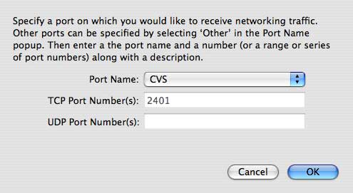 To open a port click “New†in this window. In the window that drops down, make the “Port Name†show “Other.†In “TCP Port,“ type 5901. In “Description,†you can type anything you want. Click OK. You can now close System Preferences and continue.