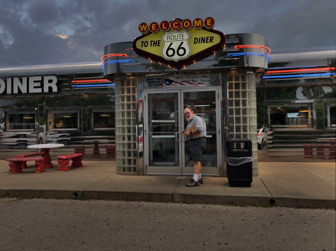 Trying out the local fare, we lunched at the Country Aire Restaurant where the waitress informed us it is a sin not to finsh all the food on your plate. The food was good, but we liked the ambiance at the Route 66 Diner, Saint Robert, Missouri, better. Bob is such a gentleman.