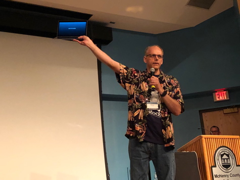 Mike is demonstrating data graphics when the projector has been shut down.