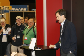 David Pogue, best selling author of Mac OS X: The Missing Manual, gave an informative talk about his hands-on experience with the iPhone and his interview with Steve Jobs. See more about the stroy in his New York Times blog.