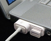 Apple trumpets their MagSafe power plug attachment for the MacBooks and MacBook Pros. MagSafe is the answer to the ongoing problem of laptop users tripping over the power cord, thus yanking their computer off their desk, with it plunging to a landing both hard and expensive.