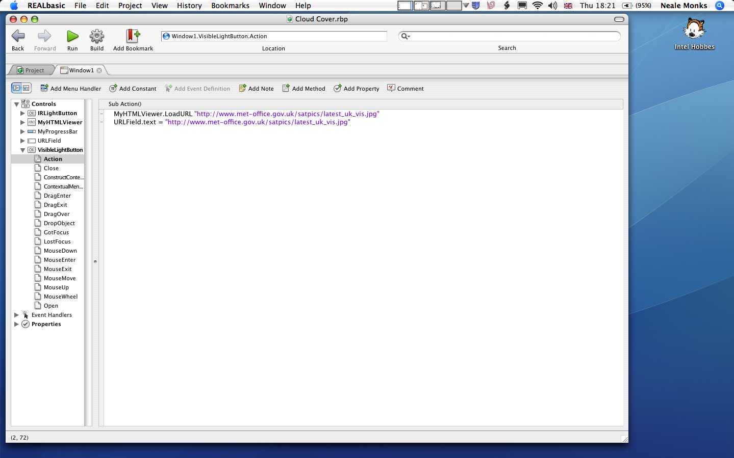 Creating your own computer program in REALbasic 2006 is straightforward and remarkably good fun. With a little practise, you can craft all kinds of neat applications tailor-made to your business or hobbies. In this tutorial, we’ll make a program that access the Meteorological Office web site and then downloads the latest cloud cover satellite image. Definitely useful, the British summer being what it is. In the process, we’ll look at how REALbasic programming works, and how to create a logical interface and add all the little extras like menu items and tool-tips.