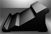 The iTilt is a triangular stand, made of dense foam (not the same material found on the mouse pad or screen protector) that raises your PowerBook several inches, and positions it at a 45 degree angle. The iTilt does not use any clips; the ‘Book fits precisely into the stand. The back and sides are open, so all the ports are open for both Titanium (ports on the back) or Aluminum (ports on the side) models.