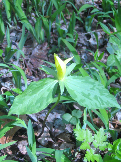 Wildflower season is mounting steadily in the lower elevations of the Smokies. Plenty of yellow trillium easing into view: