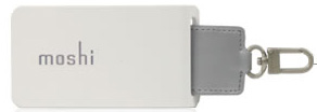 I did try to hook up an external USB 2.5†HD to the extra Cardette ports and even with two cables plugged in, one for power, one for data, the Cardette did not push enough juice through to power the drive. However, mice, and USB pocket drives worked just fine, even when both were plugged into the ports at the same time. When the unit is plugged in the words “Moshi†glow lightly, so you know you’re getting power. It’s designed with a hook in the front and comes with a detachable strap that folds around the hook using Velcro tabs with a clip on the end so you can attach it to a computer or camera bag.