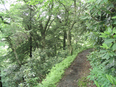 After two and a half miles of switchbacks and verdant hemlock groves the trail reaches a saddle in the upper ridge known as Low Gap. This is the top of the mountain, technically, although it’s still rugged uphill to the peak. From this juncture the trail follows the Appalachian Trail west to Mt. Cammerer. Here’s a quick peek at a chunk of the AT: