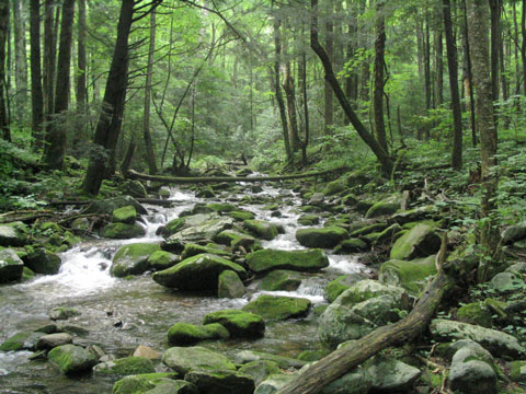 The single best method to maintaining partial comfort is to maneuver thyself in close proximity to a stream. Cooling breezes blow a bit of the stream’s chill in your direction. A momentary relief, but unfortunately Cosby Creek here is only encountered in the first few miles of trail pounding. The hike progresses away from it up the watershed, a pity, for the light breeze is soon missed and the echo of the stream fades to a delicate murmur the higher up the ridgeline you progress.