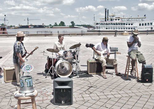 There’s a seafood restaurant right on the river with a common area in front of it where a small band was set up on the cobblestones. We sat on the patio outside facing the band and the sparkling Mississippi. The huge boats plodding slowly by reminded us to relax and enjoy the moment. Together, alone, and nothing to do but nothing.