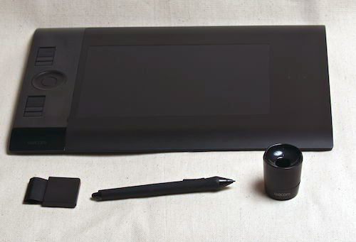 One of the benefits of buying a Wacom Intuos 4 tablet is that it comes bundled with a few applications. The applications are not on the driver CD, but on the registration site at Wacom.com. All applications are available for either Mac or PC. You have the choice of Adobe Photoshop Elements 6 or 8, Autodesk SketchBook Express, or Corel Painter Sketch Pad. You also have Nik Color Efex Proâ„¢ 3 WE6 and a set of Wacom brushes for Photoshop.