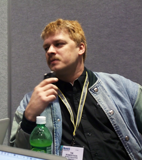 Guy readies his video gear as Mark assists. It’s still early, and the keynote is still in progress.
