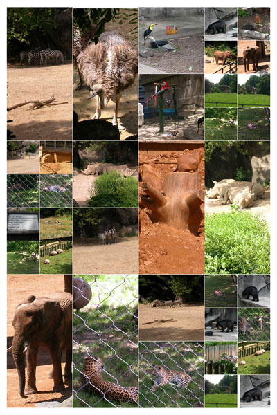 The templates have what I would describe as drop-in spaces or place holders for each image. A media window similar to the one in iLife and iWork allows you to drag and drop photos into these spaces. The window gives you access to your iPhoto library and your Pictures folder. You can also drag and drop from the Finder.