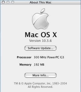 This PowerMac G3 is running the latest OS from Apple, Mac OS X 10.3.6.