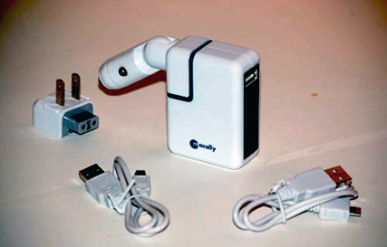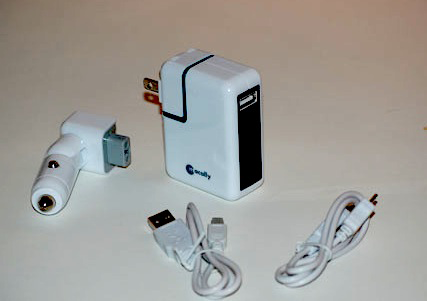 The device comes with two cables, one for USB Mini-B devices and another for Micro USB connections. There’s also a handy status button which, when pressed, will tell you how much juice is left in the battery or, if the gadget is plugged into an AC outlet, what the status is of the recharging.
