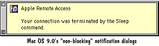 Mac OS 9 includes a client/server version of Apple Remote Access, FontSync for identifying fonts based upon characteristics, CarbonLib for compatibility with Mac OS X applications, notification dialogs that don’t block out the rest of the system, and a new version of the LaserWriter driver which is now fully scriptable.
